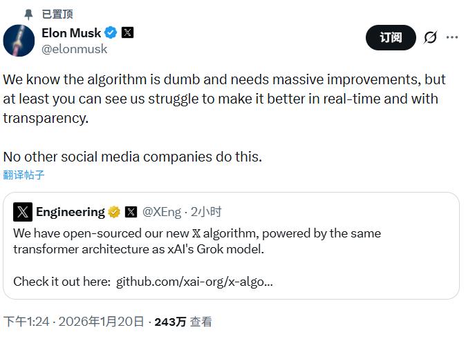 马斯克正式开源X平台推荐算法,信息筛选、打分、排序全由AI执行