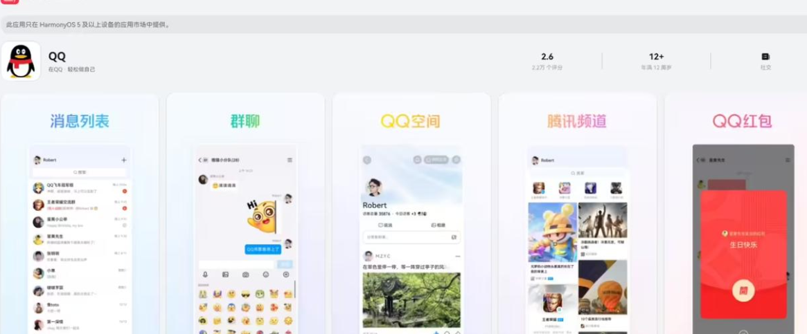 今日,腾讯QQ鸿蒙版App在华为应用市场正式开启9.2.15版本邀测升级,受邀用户可通过短信通知链接完成安装。