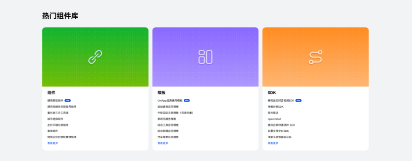 - 海量组件专区:汇聚UI、媒体、算法、工具等各种类型的组件,让开发像搭积木一样轻松。