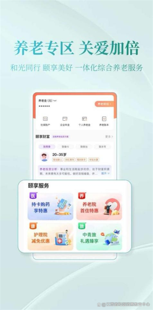 光大手机银行全面升级养老金融服务专区,为客户提供“社保、企业年金、个人养老金”三位一体综合养老金融服务。打造“颐享服务”专区,整合光大集团旗下光大养老、中青旅、嘉事堂等特色产品,提供“金融+医养康旅”光大特色专属服务。全面改版“简爱版”,化繁为简,助力银发用户乐享便捷服务。