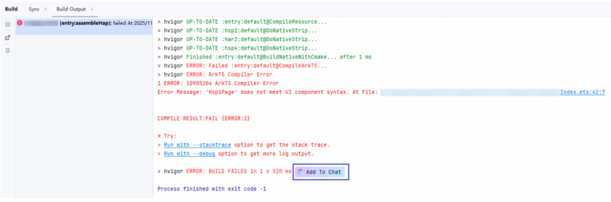 目前,「编译报错AI修复」主要专注于ArkTS语法错误的修复,且已上线CodeGenie 6.0和5.1版本,已经准备好加入你的开发工具箱。如果你也经常被编译错误折磨,不妨试试CodeGenie的「编译报错AI修复」功能。在产生编译构建报错后点一下「Add To Chat」,剩下的交给智能体就行。