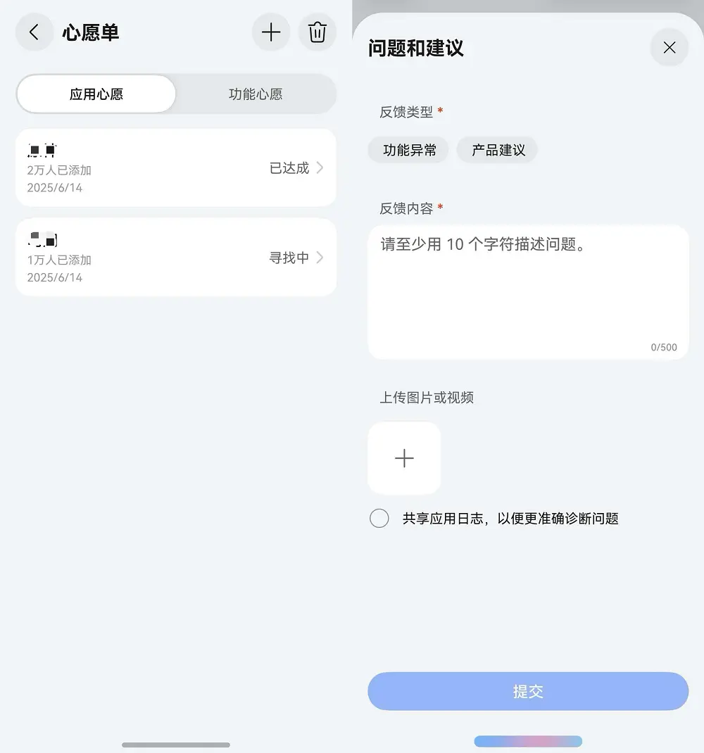 爸妈习惯用的某个APP(比如地方性戏曲软件、或地方新闻客户端)在应用市场找不到,可以在“应用心愿单”提交应用上架需求。使用过程中遇到问题或者建议,也可以反馈给华为官方,特别贴心。