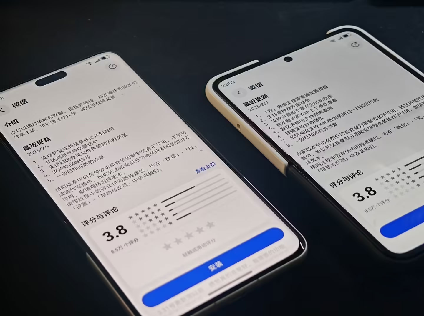 经过进一步实测发现,目前微信鸿蒙版 App 的升级采取分批推送的方式进行,且在同一华为账号的不同设备之间也存在分批推送的情况,预计是不同设备之间的适配进度存在差异。