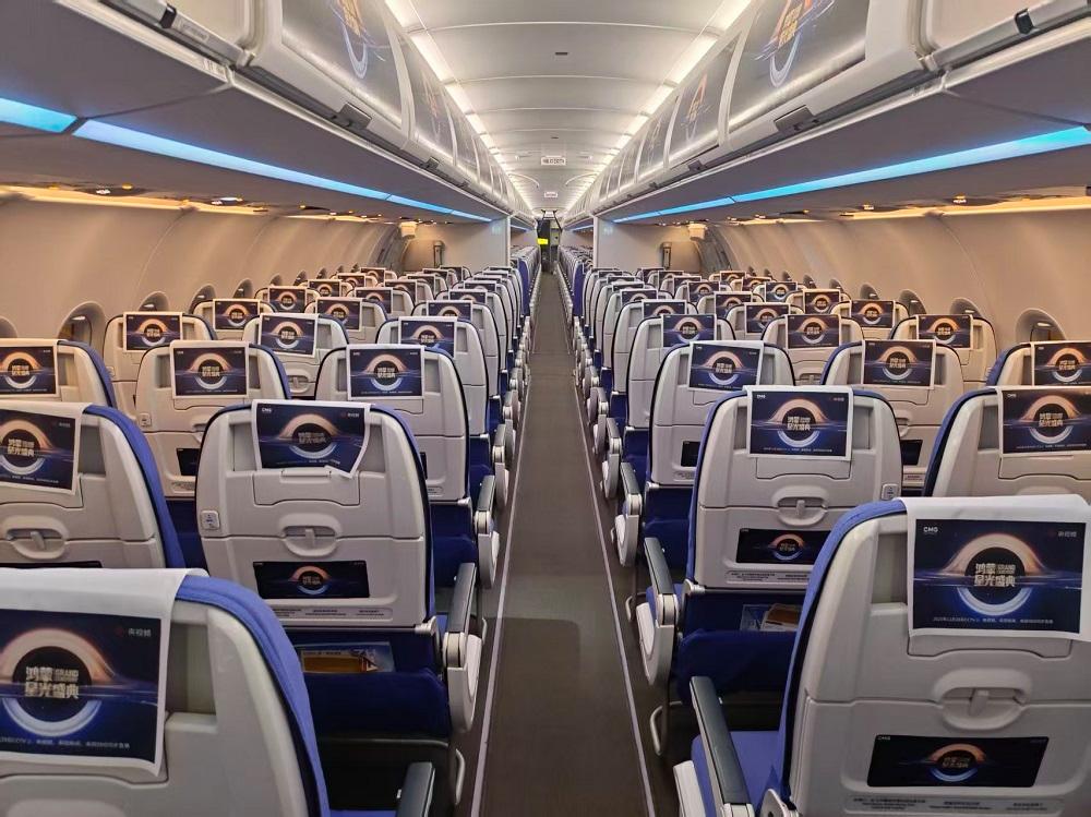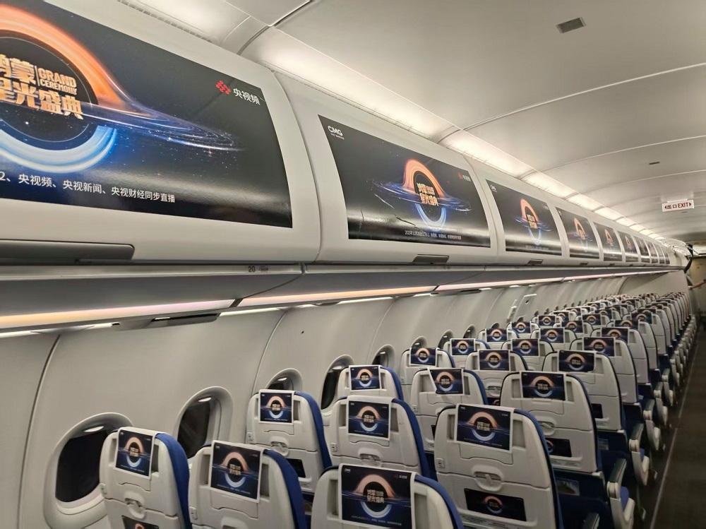 两架身披限定主题的飞机,化身“移动的科技秀场”,穿行于深圳往返北京、海口、无锡、济南、合肥、青岛等多条航线。从行李架到小桌板,满满都是鸿蒙星光元素,登机即沉浸,航班秒变“盛典前奏”!