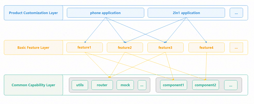 · 公共能力层:存放公共能力,包括公共UI组件、数据管理、外部交互和工具库等共享功能。