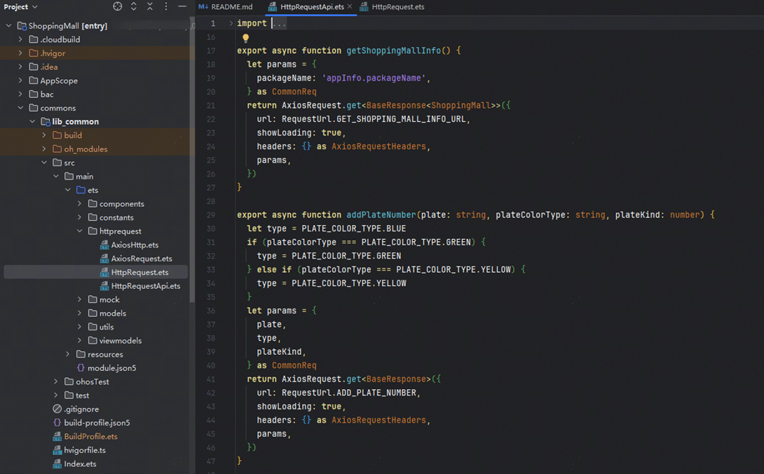 将commons/lib_common/src/main/ets/httprequest/HttpRequestApi.ets文件中的mock接口替换为真实的服务器接口。