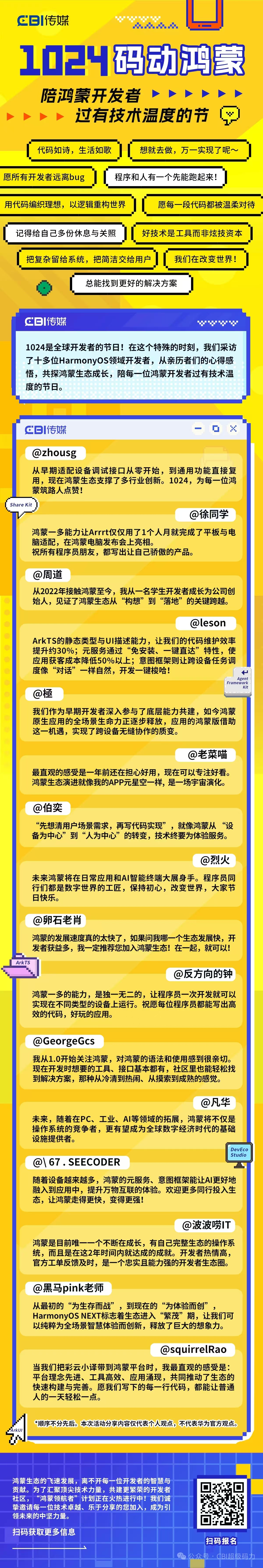 在这个特别的节日里,CBI传媒HarmonyOS开发者社区采访了多位HarmonyOS领域的开发者,用资深开发专家的心得感悟,助力开发者进阶,共探鸿蒙生态成长,陪每一位鸿蒙开发者过有技术温度的节日。