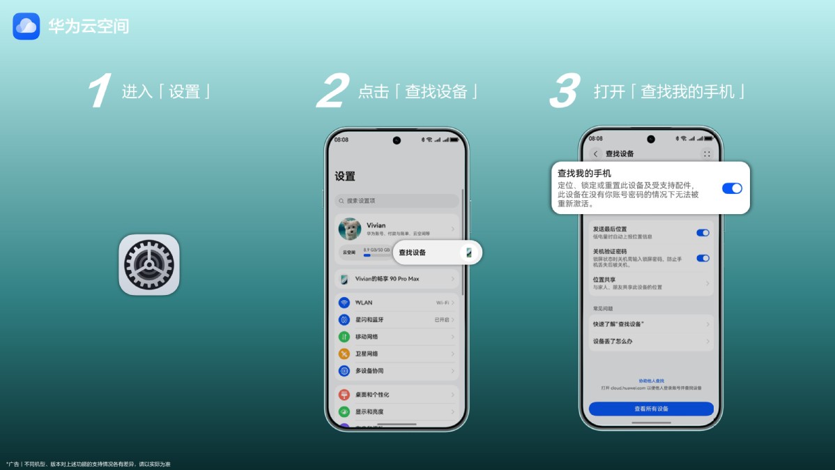 除了楼层及店铺级定位,华为云空间“查找设备”功能还支持为遗失设备开启“丢失模式”,实现远程锁定,并在锁屏界面留下联系方式,方便拾到者联系失主。畅享90系列新机到手后,用户可以第一时间进入“设置”,在华为账号胶囊中点击“查找设备”,确认“查找我的手机”功能已开启,即可享受更坚实的安全守护。