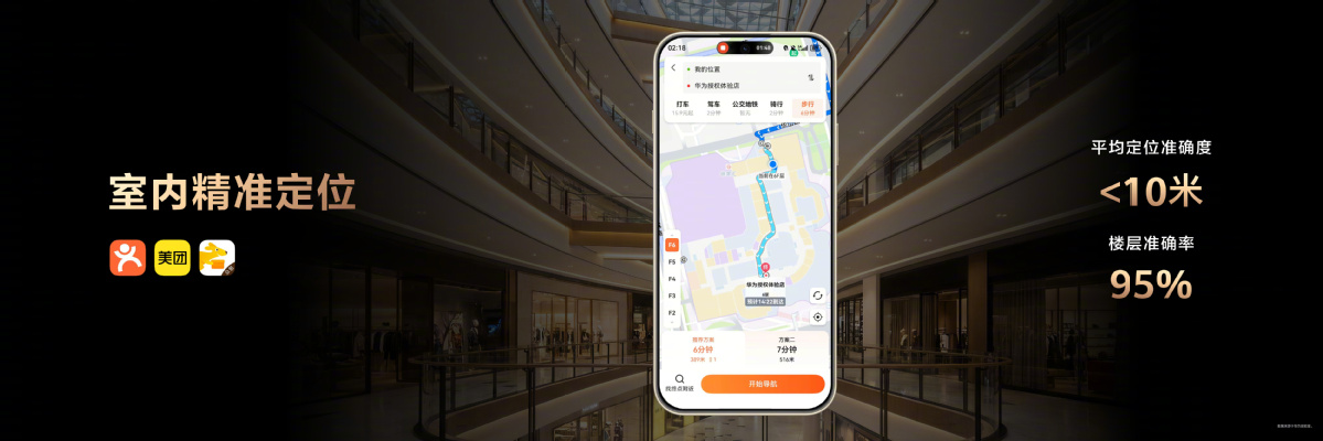 作为本次发布会的核心产品之一,畅享90系列搭载全新HarmonyOS 6,依托鸿蒙智慧通信技术,实现更精准的室内定位,突破了传统定位在室内场景的局限。当用户在大型商场快速找寻某家店铺时,畅享90系列可以精准定位到楼层和具体位置——平均定位准确度小于10米,楼层准确率达95%,大大提升室内定位效率。