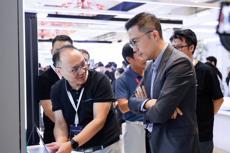 (图|华为终端BG OEM生态产品领域总经理杨海松参观佳普乐展区)