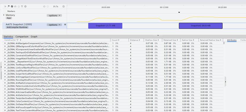 对应的运行时调优内存快照界面: