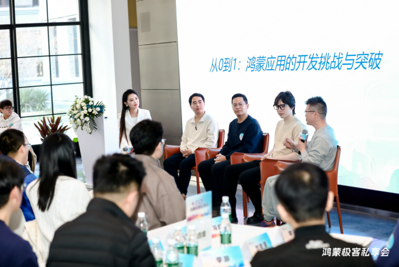 随后的圆桌对话汇聚了头部应用开发者、优秀个人开发者、百万粉丝网红开发者、跨界转型开发者等多元背景的嘉宾,围绕开发挑战与突破、HarmonyOS特性使用、行业场景创新等话题展开深度探讨。4 位深耕不同领域的开发者代表各抒己见,带来最真实的实践洞察。