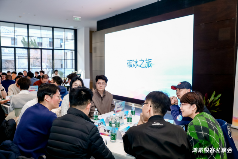 活动伊始,一场围绕 “我与鸿蒙的故事” 的破冰交流让现场快速升温。6 个小组的开发者们坦诚分享着与鸿蒙的不解之缘:有人被鸿蒙分布式架构的设计理念所吸引开始加入鸿蒙应用开发,有人正在将成熟应用迁移至鸿蒙平台,还有人正在探索鸿蒙元服务卡片带来的全新交互可能。多元的背景与共同的使命,让这场鸿蒙极客私享会从人与人之间的连接开始。