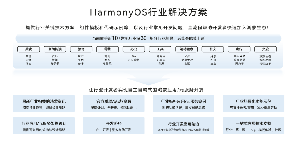 HarmonyOS行业解决方案,提供各行业鸿蒙应用&元服务全流程技术方案