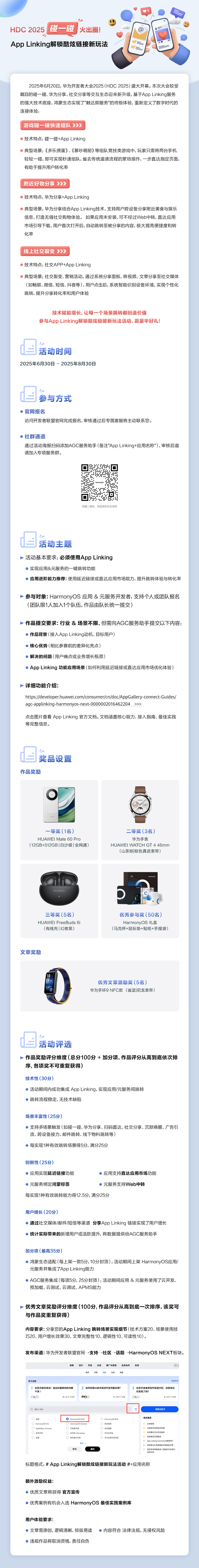 鸿蒙生态碰一碰、华为分享、社交分享等功能,通过App Linking实现"触达即服务",让场景跳转更智能。参与活动解锁新玩法,赢好礼!