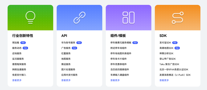 针对停车行业开发者,鸿蒙推出专属元服务模板,以 “轻量化、高复用、易定制” 为核心优势,大幅降低开发门槛。模板已预置首页、找车位、我的三大核心模块,涵盖车牌管理、订单查询、地图定位、在线支付等常用功能,开发者无需从零搭建,仅需少量配置和定制即可快速上线产品。