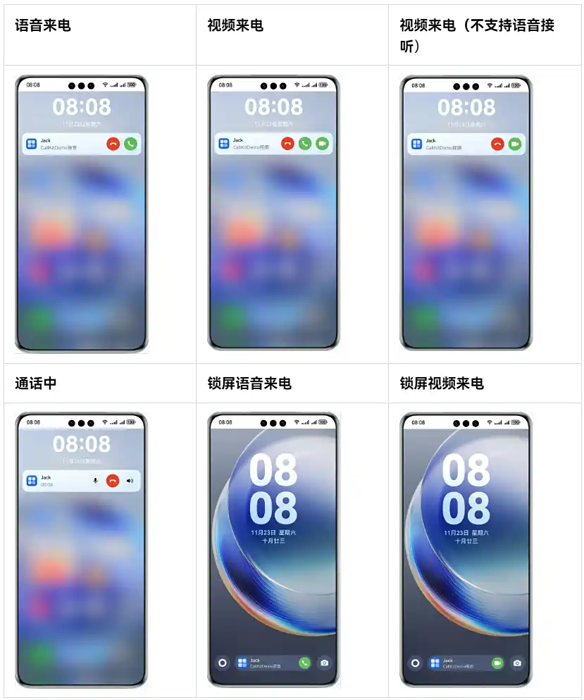 查询华为开发者文档可以发现,鸿蒙 HarmonyOS NEXT 系统的 Call Kit(通话服务)功能类似苹果 iOS 的 CallKit,能为 VoIP 通话类应用提供类似系统原生电话的接听体验,直接调用系统通话组件,在系统锁屏 / 通知中心界面显示统一通话组件。