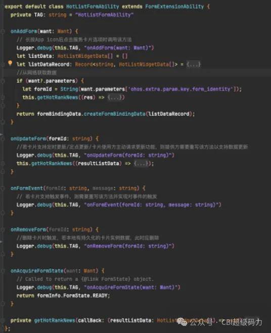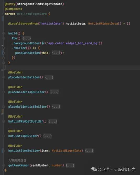 卡片页面文件 HotListWidgetCard.ets 用于卡片展示页面,展示卡片元素,处理卡片跳转事件