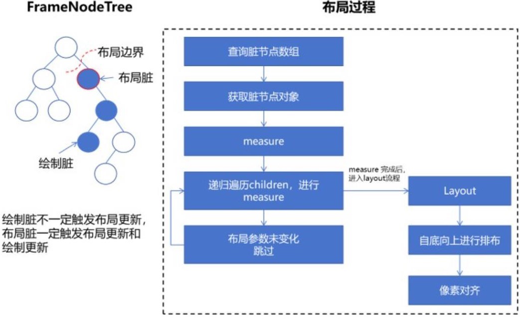 状态变更触发依赖收集,精准标记相关组件为脏,在布局过程只更新需要刷新的组件,避免造成组件树的重建。