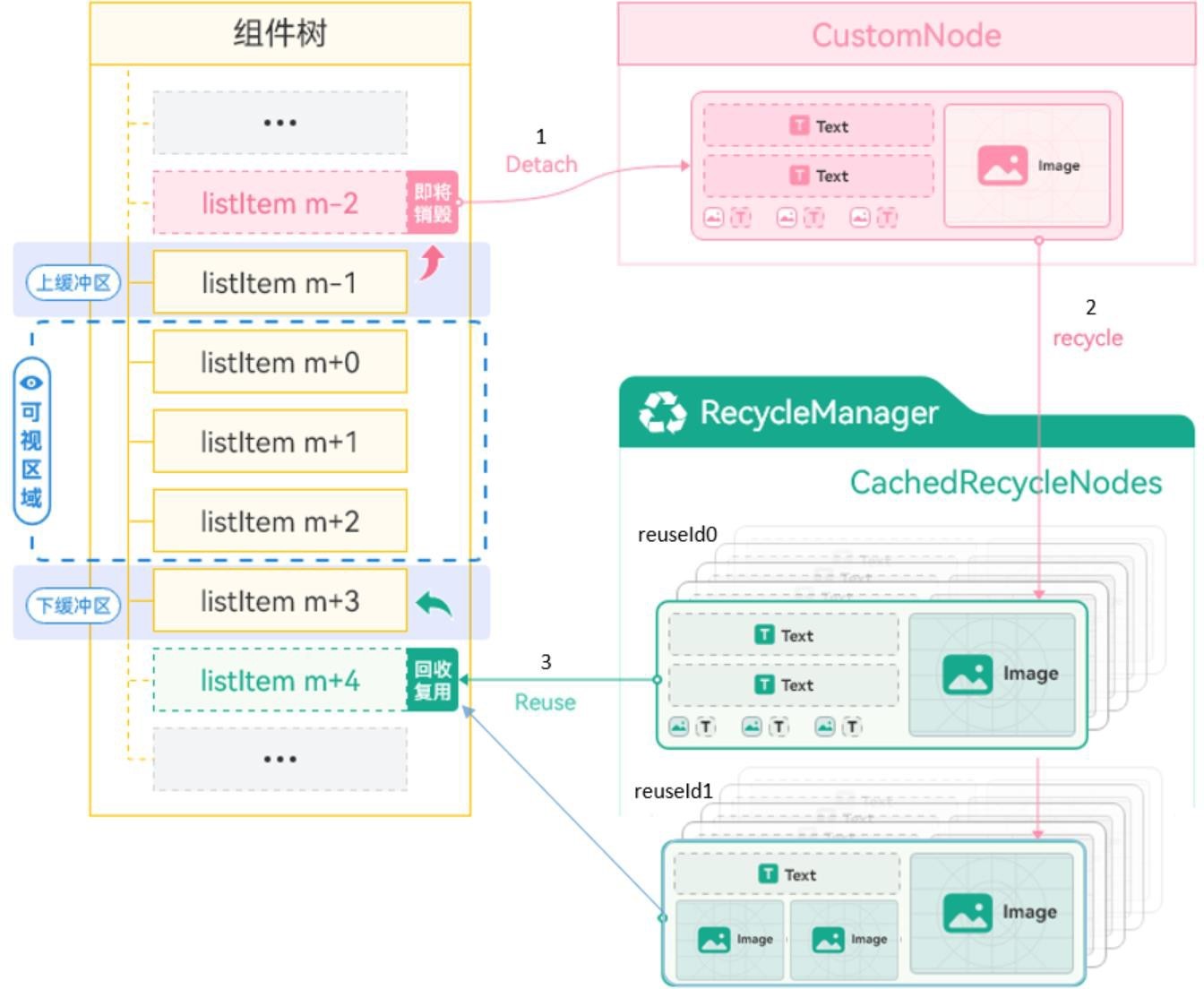 复用替代重建, 利用组件复用机制,减少滑动过程中组件创建、布局开销,提升帧率。