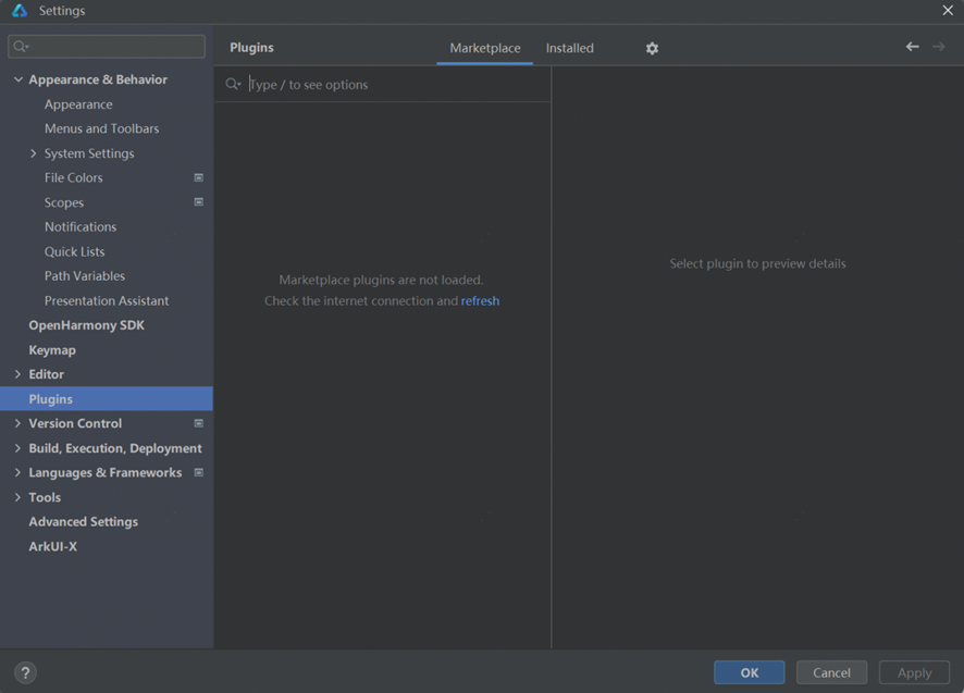 在设置窗口中,选择“Plugins”(插件)选项卡,进入插件市场。