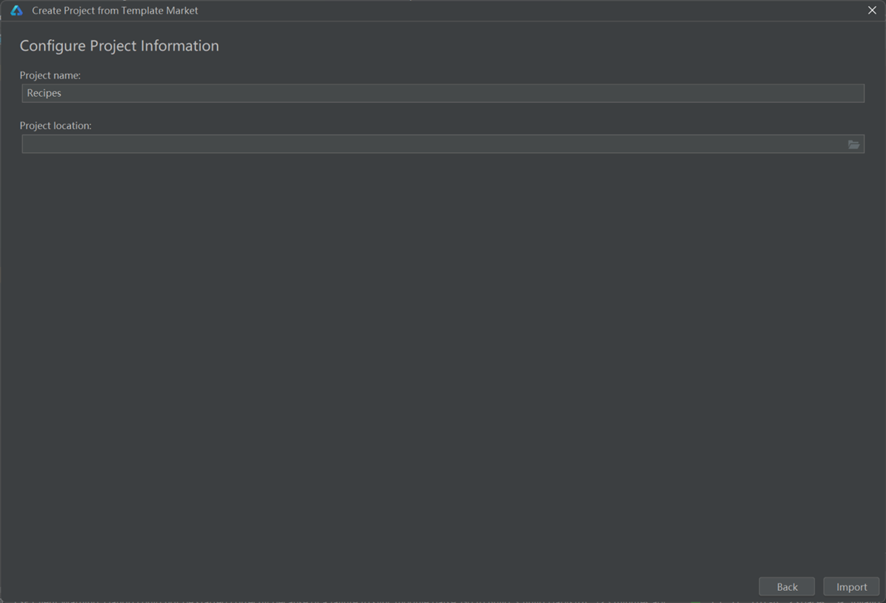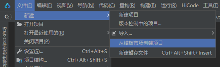 点击顶部菜单栏中的“File(文件)”> “New...(新建)”> “Create Project from Template Market(从模板市场创建项目)”,进入模板市场界面;
