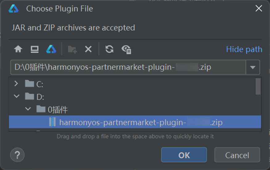 在弹出的文件选择窗口中,找到并选择您下载的插件包文件,点击“OK”(确定),开始安装插件。