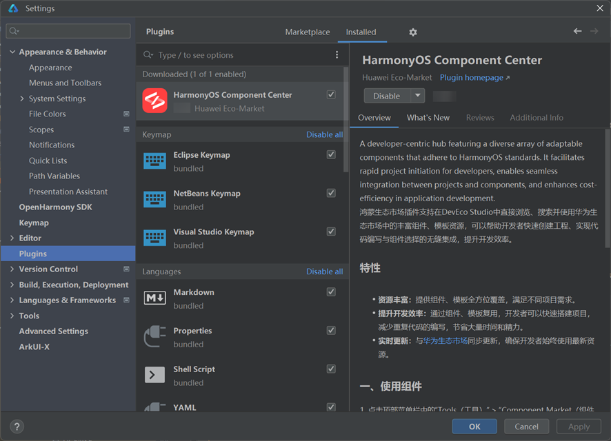 鸿蒙生态市场插件支持在DevEco Studio中直接浏览、搜索并使用丰富组件、模板资源,可帮助开发者快速创建工程、实现代码编写与组件选择的无缝集成,提升开发效率。