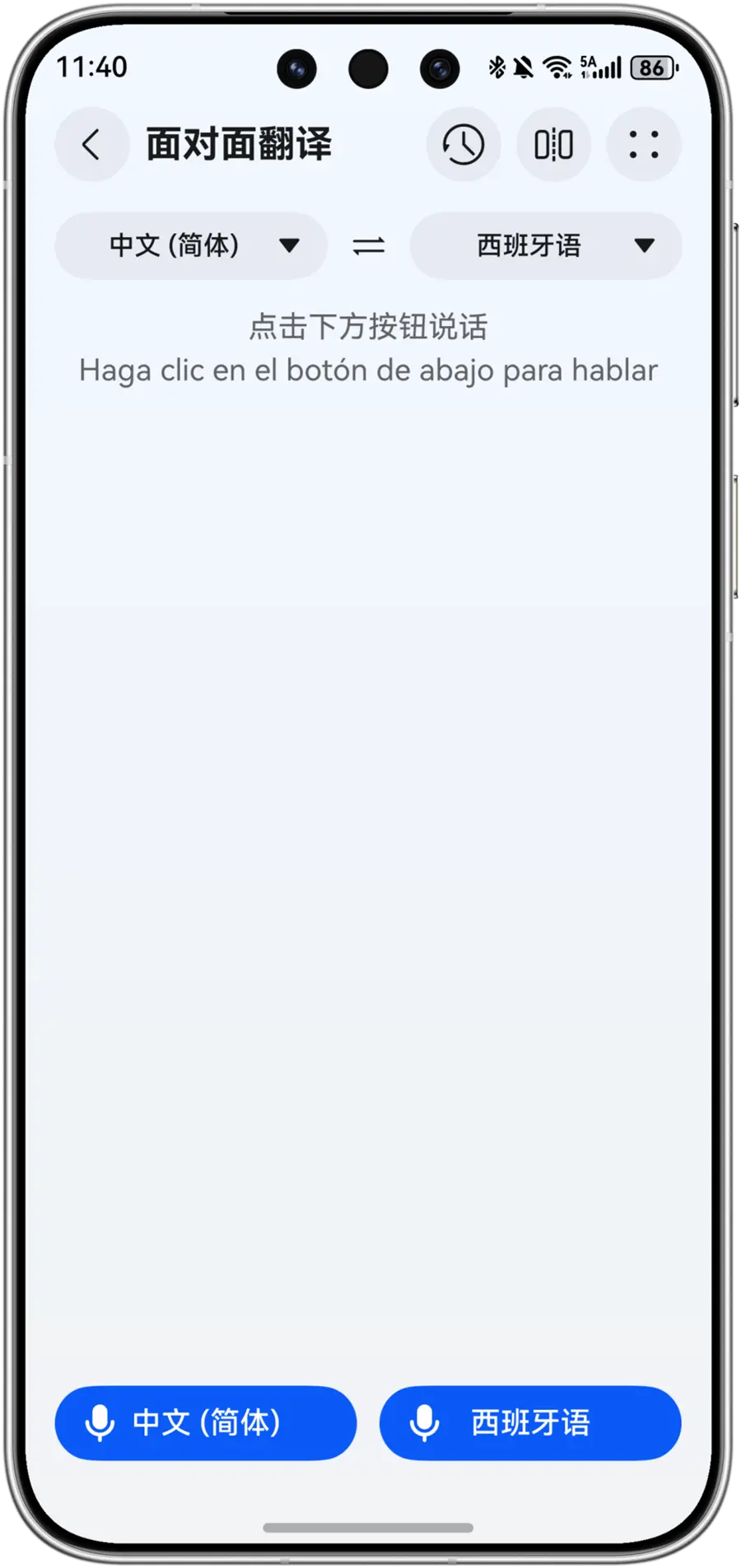 和餐厅服务员沟通也可以开启同声传译,我说中文,小艺秒转西语播放;对方的回复也实时转成中文字幕显示在屏幕上,沟通成本直线下降。整个过程流畅得像自带“双语频道”,再也不用手脚并用地比划了。