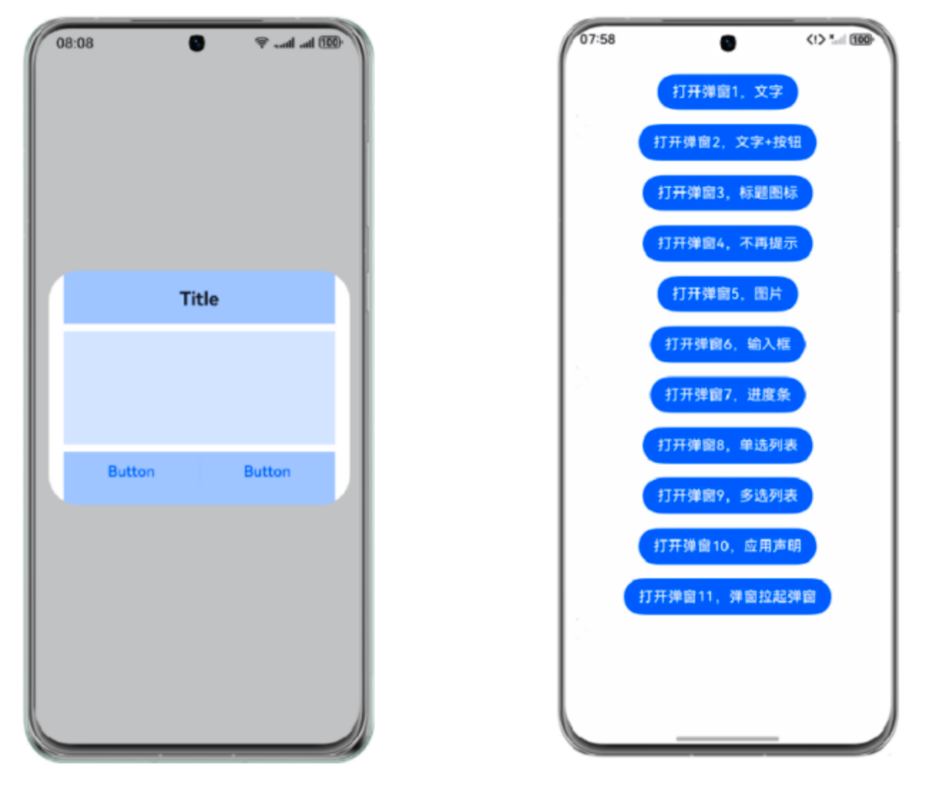 UIDialog用于在屏幕中显示一个全局弹窗的功能,支持自定义样式、任意视图弹出、动态数据更新。