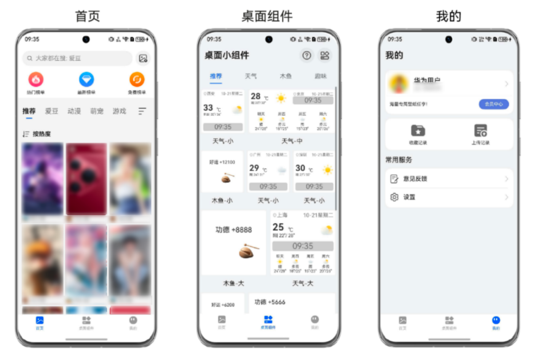 本模板为壁纸类应用提供了常用功能的开发样例,模板主要分首页、桌面小组件和我的三大模块。本模板已集成华为账号、微信登录等服务,只需做少量配置和定制即可快速实现华为账号的登录、壁纸等功能。
