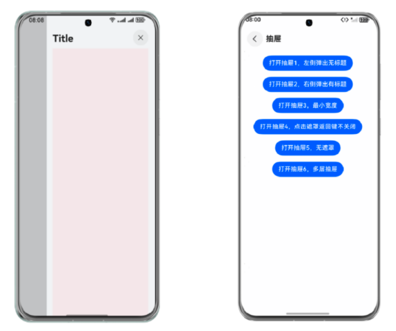 UIDrawer用于在屏幕侧边弹出一个面板,支持从左右两侧弹出。