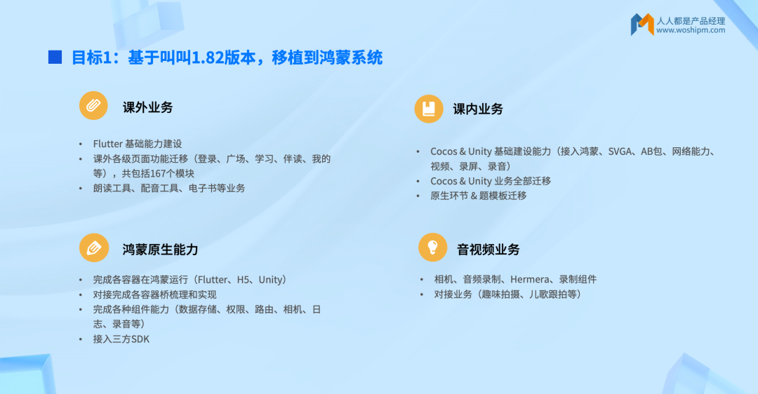 具体包含四大模块:课外业务迁移,课内业务迁移,鸿蒙原生支持,音视频业务迁移。