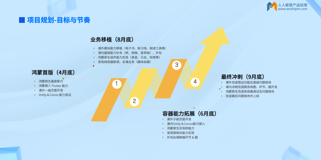 结合华为鸿蒙系统商用上线时间(2024年9月底),叫叫将六个月的总目标拆分为四大关键节点,确保项目按计划推进: