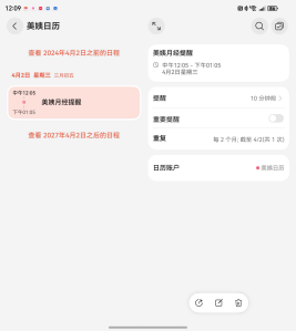 美姨日历提醒可设置单独日历,也可以使用普通日历