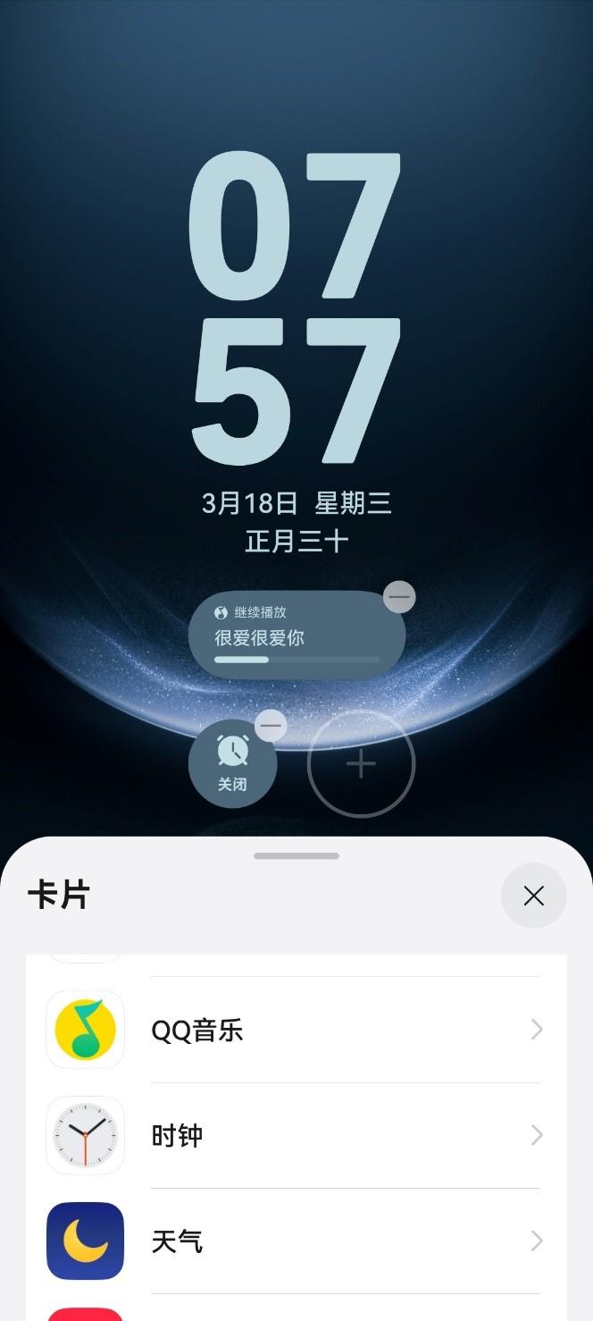 锁屏卡片:锁屏界面双指向内捏合,点“+”选卡片就能添加。