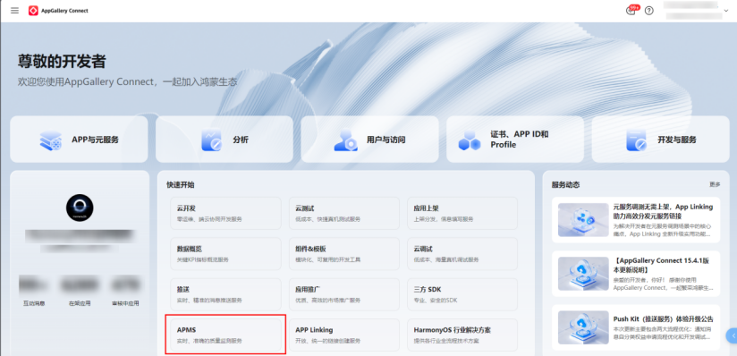 APMS无需复杂配置,开发者登录AGC即可快速上手: