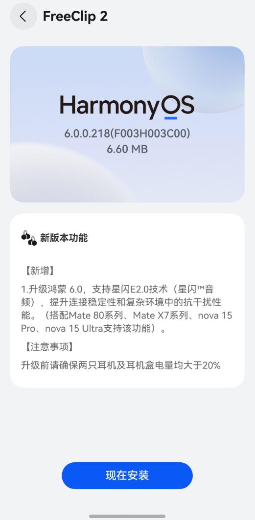 华为FreeClip 2推送鸿蒙OS 6升级:支持星闪音频 抗干扰能力提升