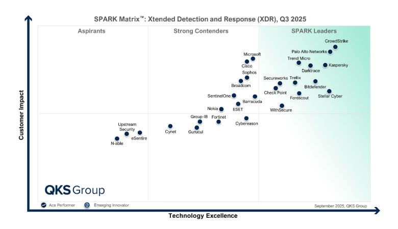 全球咨询公司Quadrant Knowledge Solutions(QKS)在其系列SPARK Matrix™报告中,将卡巴斯基评为企业级网络安全领域七大核心产品与服务的领导者。QKS特别指出,卡巴斯基凭借强大的技术实力、显客户影响力,以及将高级威胁情报、人工智能驱动技术与专家经验深度融合的能力,能够为现代规模化安全运营提供强力支持。