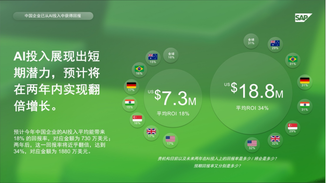 SAP 调研显示:中国企业AI投资回报率将达 34%