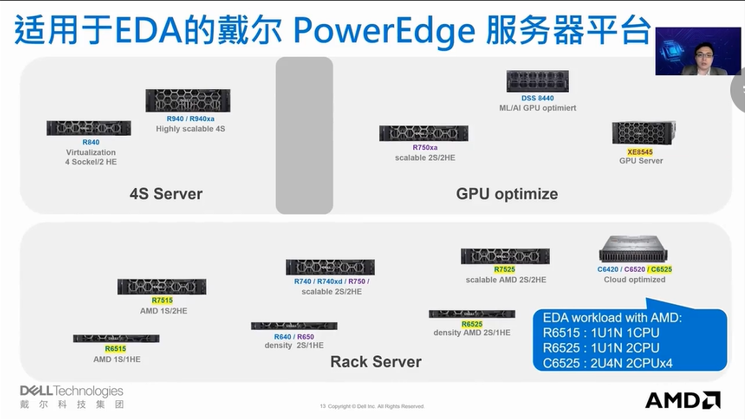 适用于EDA的戴尔PowerEdge服务器平台包括4S Server、GPU optimize、Rack Server。