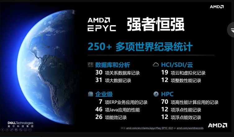 根据统计,AMD EPYC处理器在数据库和分析、HCI/SDI/云、企业级应用和HPC几个领域中已经积累了250多项世界纪录,在高性能计算HPC、云计算、企业计算、浮点比较、定点比较、服务器端Java性能等各类应用中的性能也大幅领先。