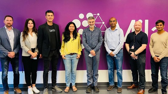 英特尔与Mila团队的成员(左起):英特尔销售开发经理Jason Gauthier;Mila合作伙伴关系部高级顾问Sophie Le Drew;英特尔行业技术专家Dan Nitta Mackay;英特尔公司副总裁兼数据中心、人工智能和云计算执行与战略总经理Kavitha Prasad;Mila创始人兼科学主任Yoshua Bengio;英特尔人工智能和云计算执行与战略副总裁Arun K. Subramaniyan;Mila合作伙伴关系部高级总监Fred Laurin;英特尔人工智能和云计算执行与战略总监Kannan Keeranam