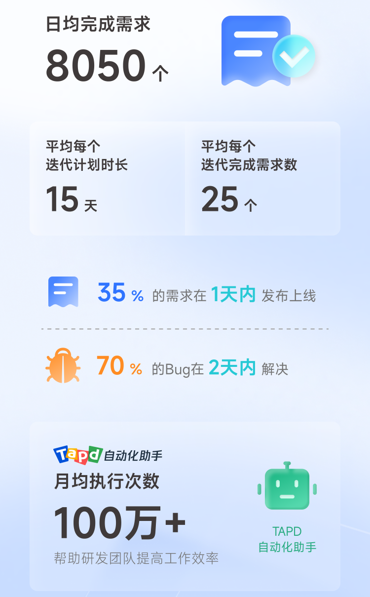 35%的需求一天内发布上线,70%的Bug在两天内解决