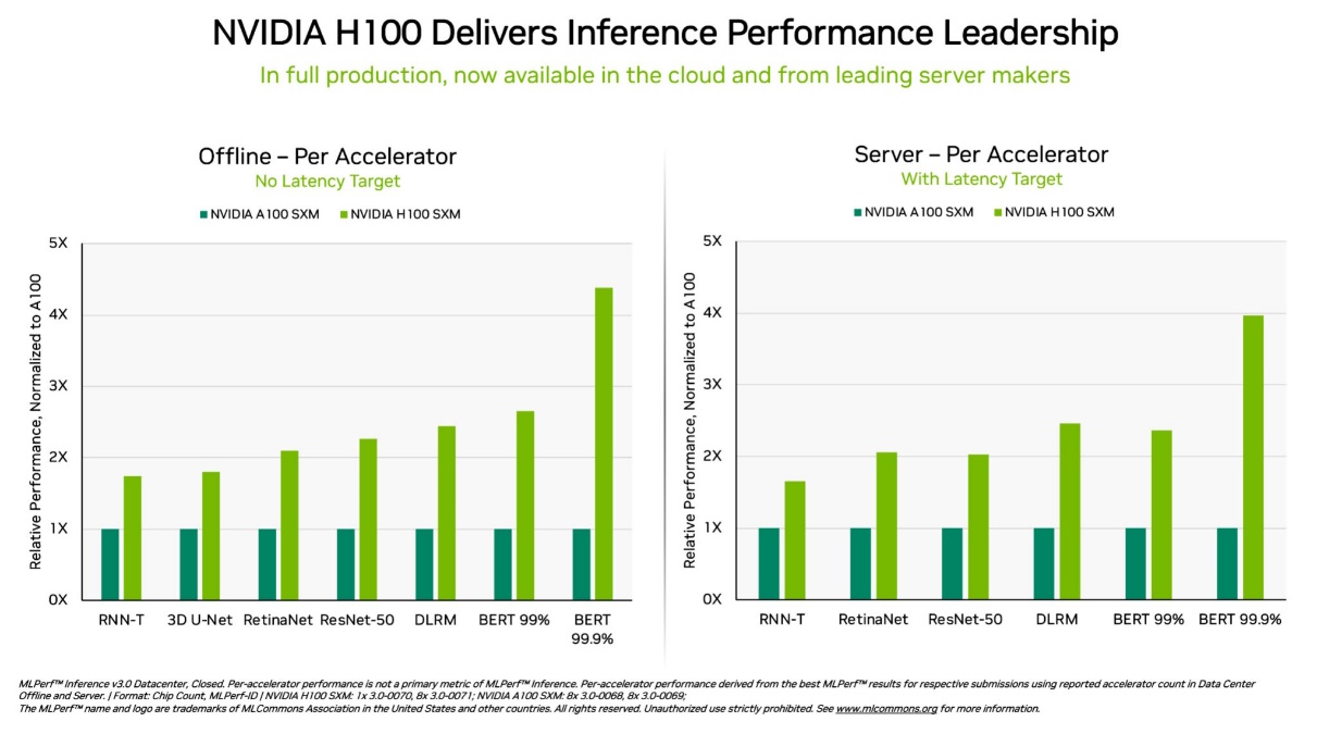 针对医疗领域,H100 GPU在3D-UNet(MLPerf医学影像基准测试)中的性能相比9月提高了31%。