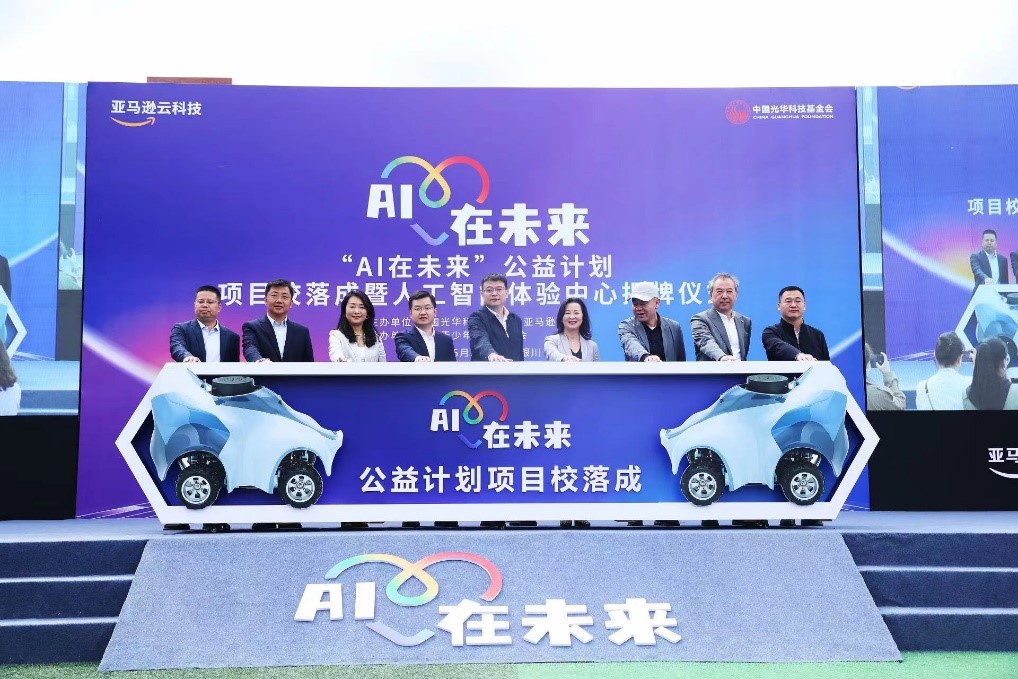 2023年5月9日,亚马逊云科技 “AI在未来”公益计划项目校落成暨首个人工智能体验中心揭幕仪式在宁夏银川市举办。“AI在未来”是由亚马逊云科技与中国光华科技基金会共同合作开展、专注于青少年人工智能和机器学习素质和能力培养的一个公益项目。项目通过亚马逊云科技全球领先的人工智能学习工具Amazon DeepRacer全自动驾驶赛车为基石,依托中国光华科技基金会在社会化动员、项目化推进方面的优势而落地执行。