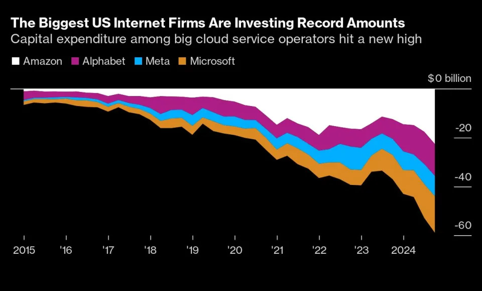 尽管三个月前华尔街对全球科技巨头在人工智能领域的巨额投资表示担忧,但这些公司并未退缩,反而计划进一步加大投入。今年亚马逊、微软、Meta Platforms和Alphabet——的资本支出总额预计将超过2000亿美元,创下历史新高,并警示投资者,明年的资本支出还将继续增长。