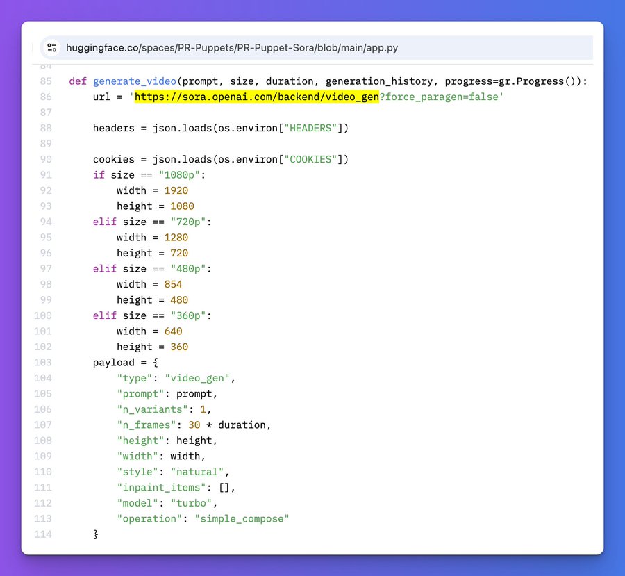 近日,一个自称“Sora PR Puppets”的组织在人工智能开发平台Hugging Face上发布了一个与OpenAI未公开的Sora API相关的项目,以此抗议OpenAI所谓的欺骗行为和“艺术清洗”。该组织使用其获得的身份验证令牌(可能源自早期访问系统)创建了一个前端,允许用户通过输入简短文字描述来生成分辨率高达1080p的10秒视频。