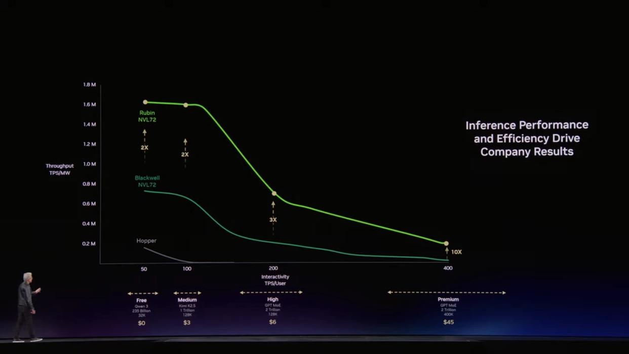 与上一代 Blackwell 平台相比,该系统仅需四分之一的 GPU 即可完成混合专家大模型(MoE)训练,同时每瓦推理吞吐量提升高达 10 倍,单 Token 成本降至十分之一。