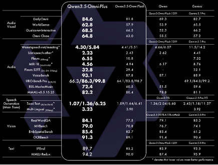 Qwen3.5-Omni跑分图